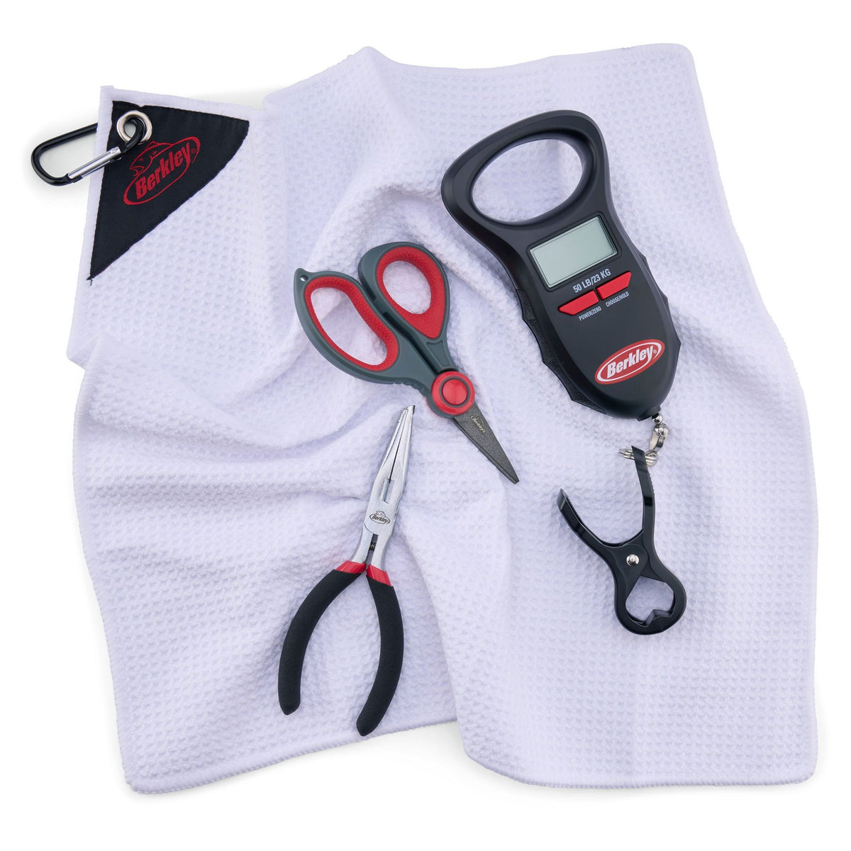 The Berkley® Angler’s Essentials Tool Kit provides anglers with the tools all anglers need when out on the water. The 50lb Digital Scale allows fish to be safely clipped onto the scale then weighed. The XCD Scissors feature stainless steel blades with ergonomic co-molded handle that is excellent for cutting braided and nylon fishing line. The chrome plated 6in pliers make for easy hook removal OR split ring and hook changes.