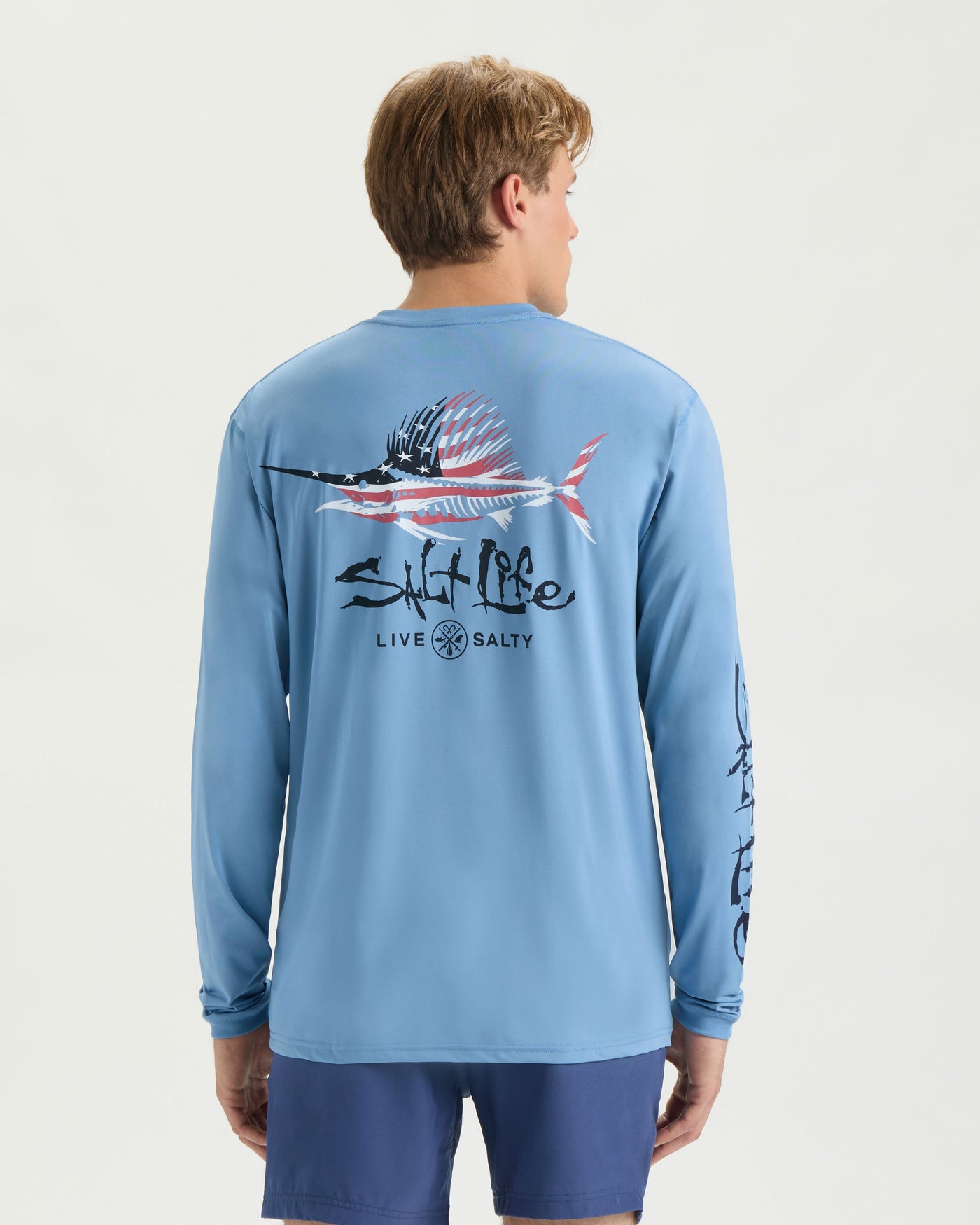 The Sailfish N Bones performance long sleeve is designed to keep you cool and protected on the water. Made with ultra-light UVapor fabric, it offers UV 50 sun protection, moisture-wicking, quick-dry, and antimicrobial features. Bold screen-printed Salt Life logos and the Sailfish N Bones design complete the look, blending performance with authentic coastal style.